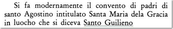 «[c. 8r] [...] Si fa modernamente il convento di padri di santo Agostino intitolato Santa Maria dela Gracia in luocho che si diceva Santo Guilieno
